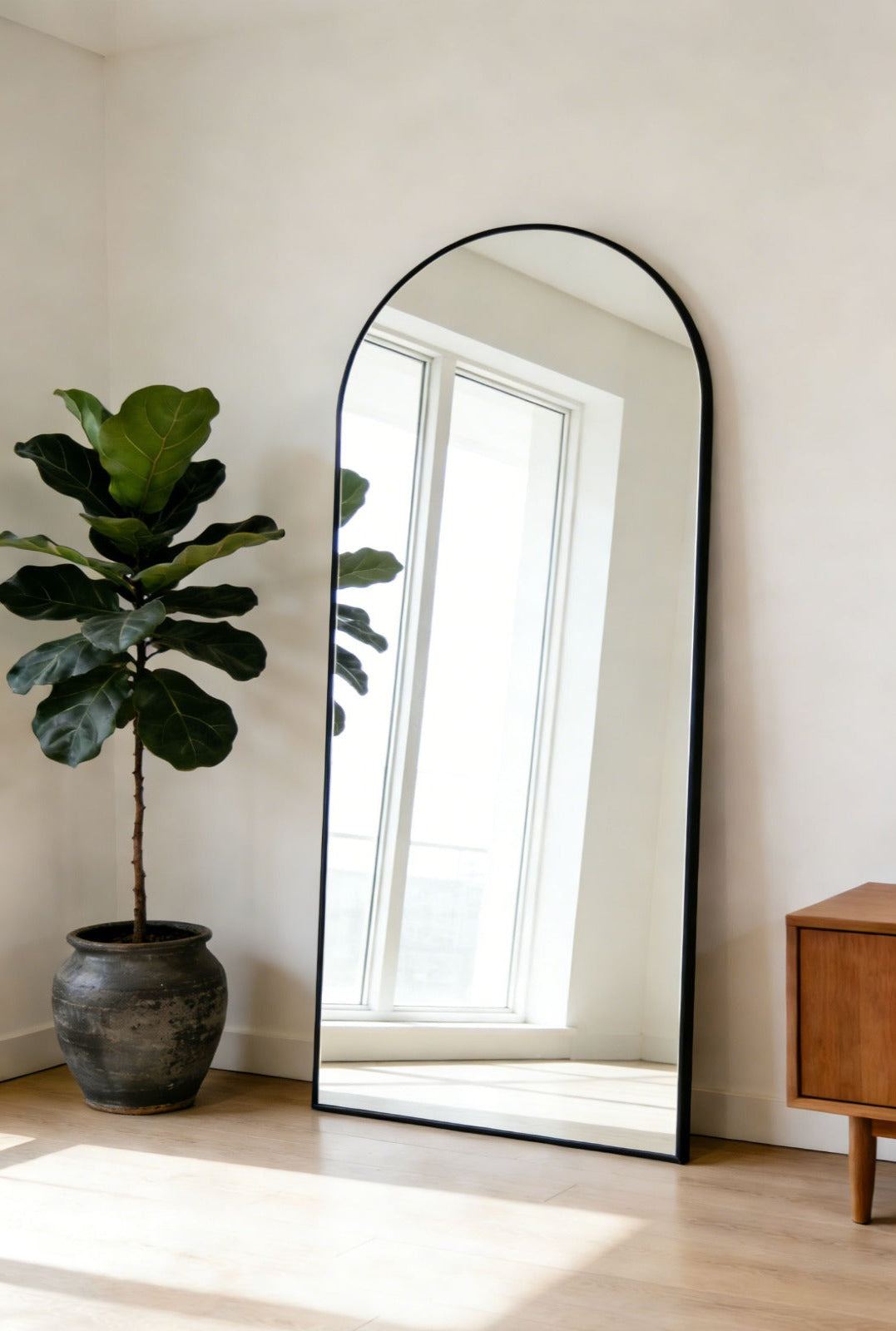 Dankzij het royale formaat is deze spiegel ideaal voor de slaapkamer, hal of woonkamer. De zwarte afwerking zorgt voor een krachtig en luxe accent, terwijl de ruimte optisch groter en lichter aanvoelt. Een tijdloos ontwerp waarin stijl en functionaliteit samenkomen.