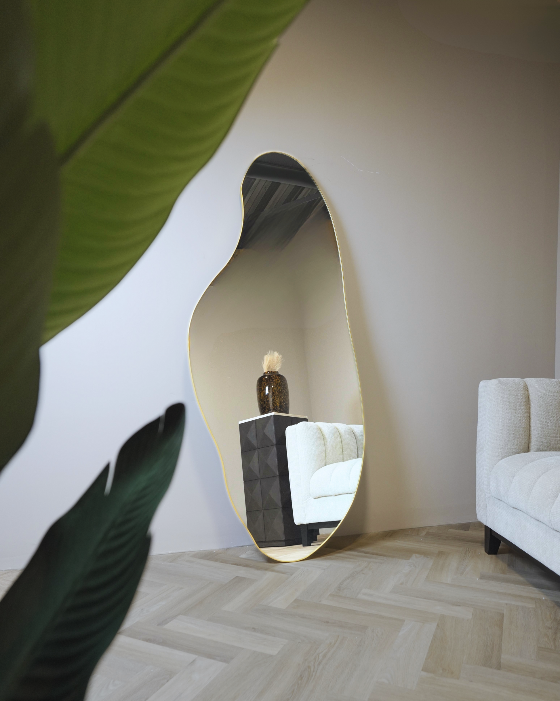 De organische spiegel van Lys is een stijlvolle en speelse toevoeging aan elk interieur. Met een afmeting van 180 x 80 cm zorgt deze spiegel voor een ruimtelijk effect en een verfijnde uitstraling.
