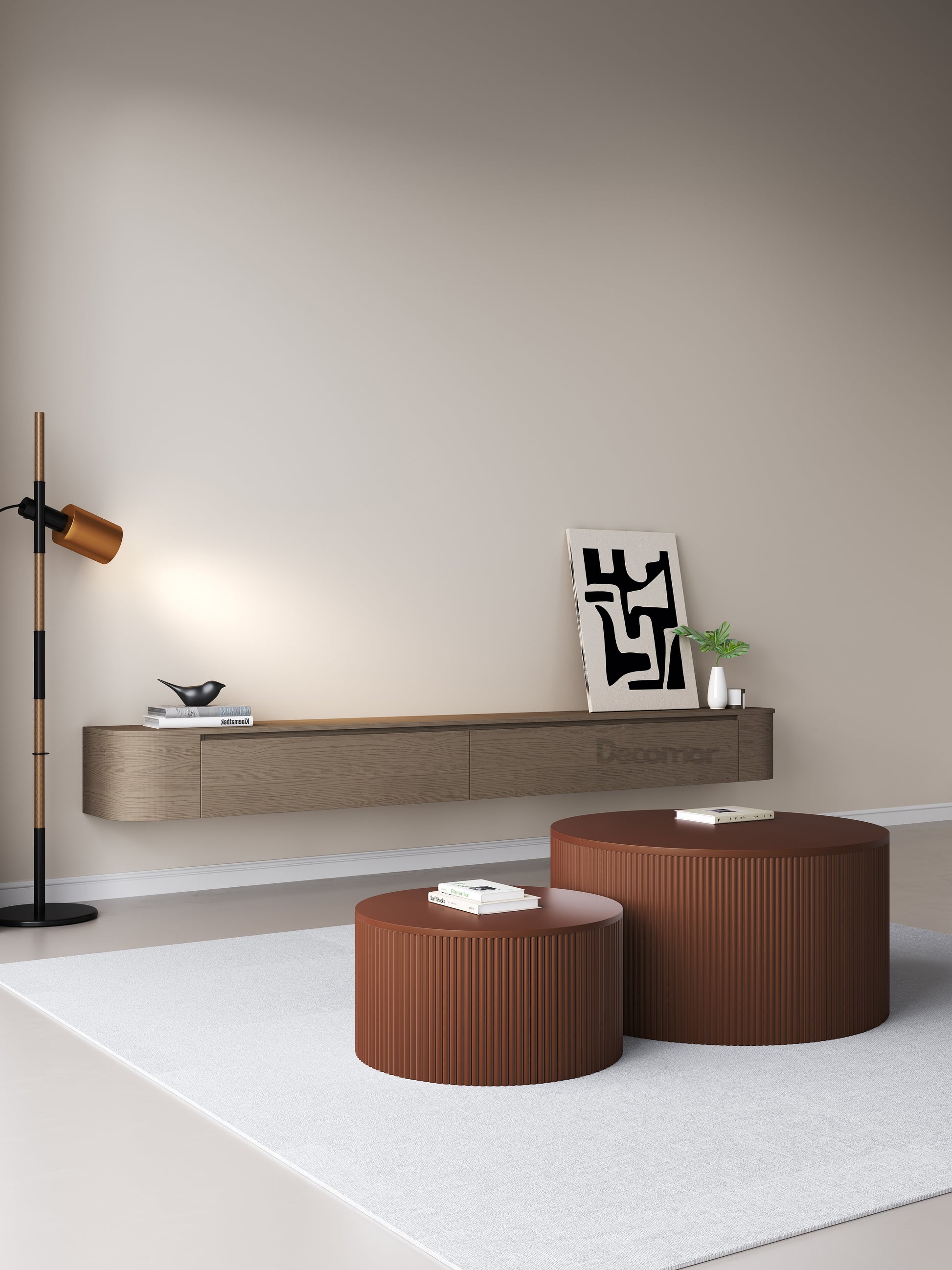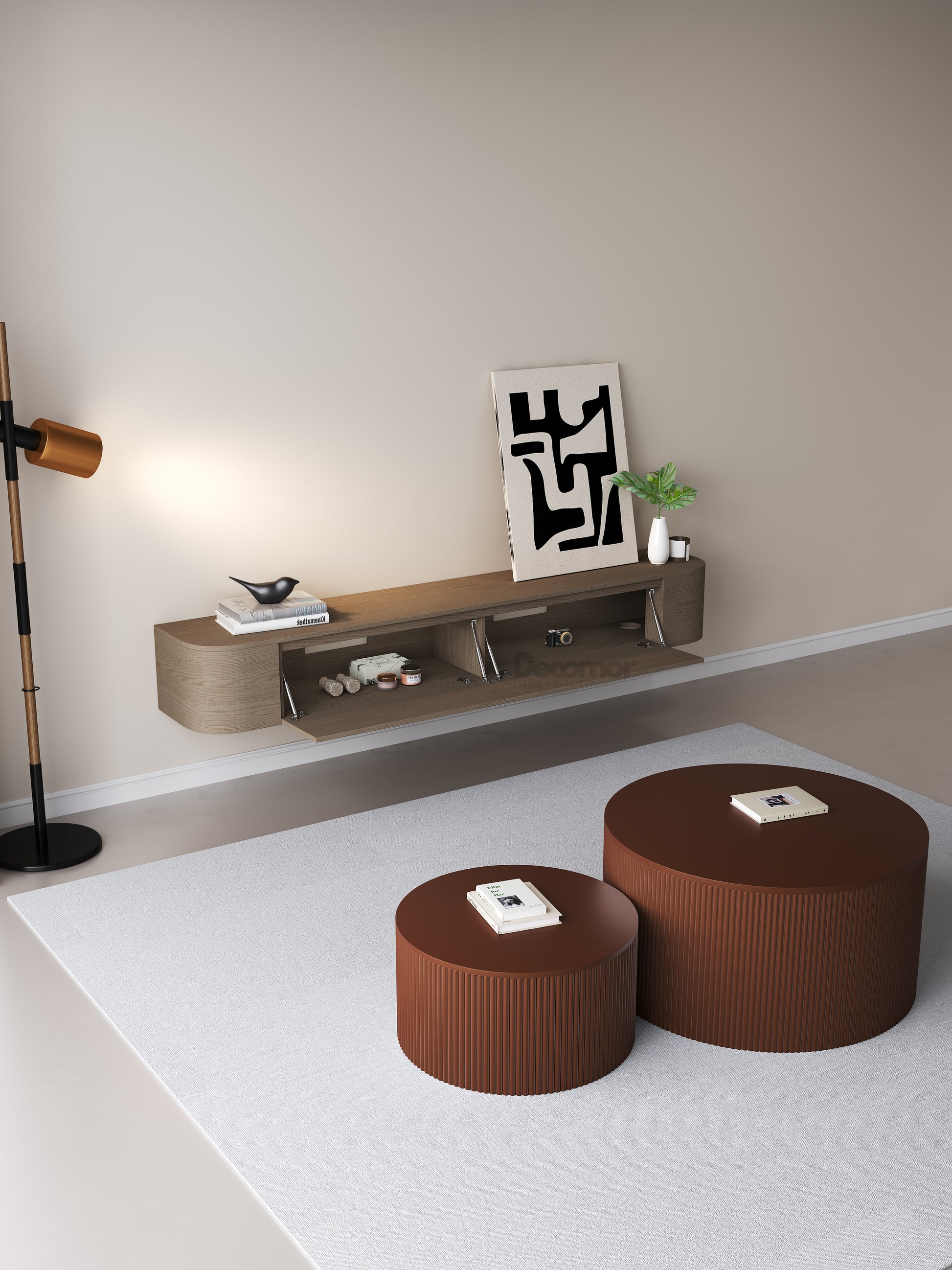 Chic Curve Ronde TV Meubel 180cm - Zwevend – Walnoot eiken