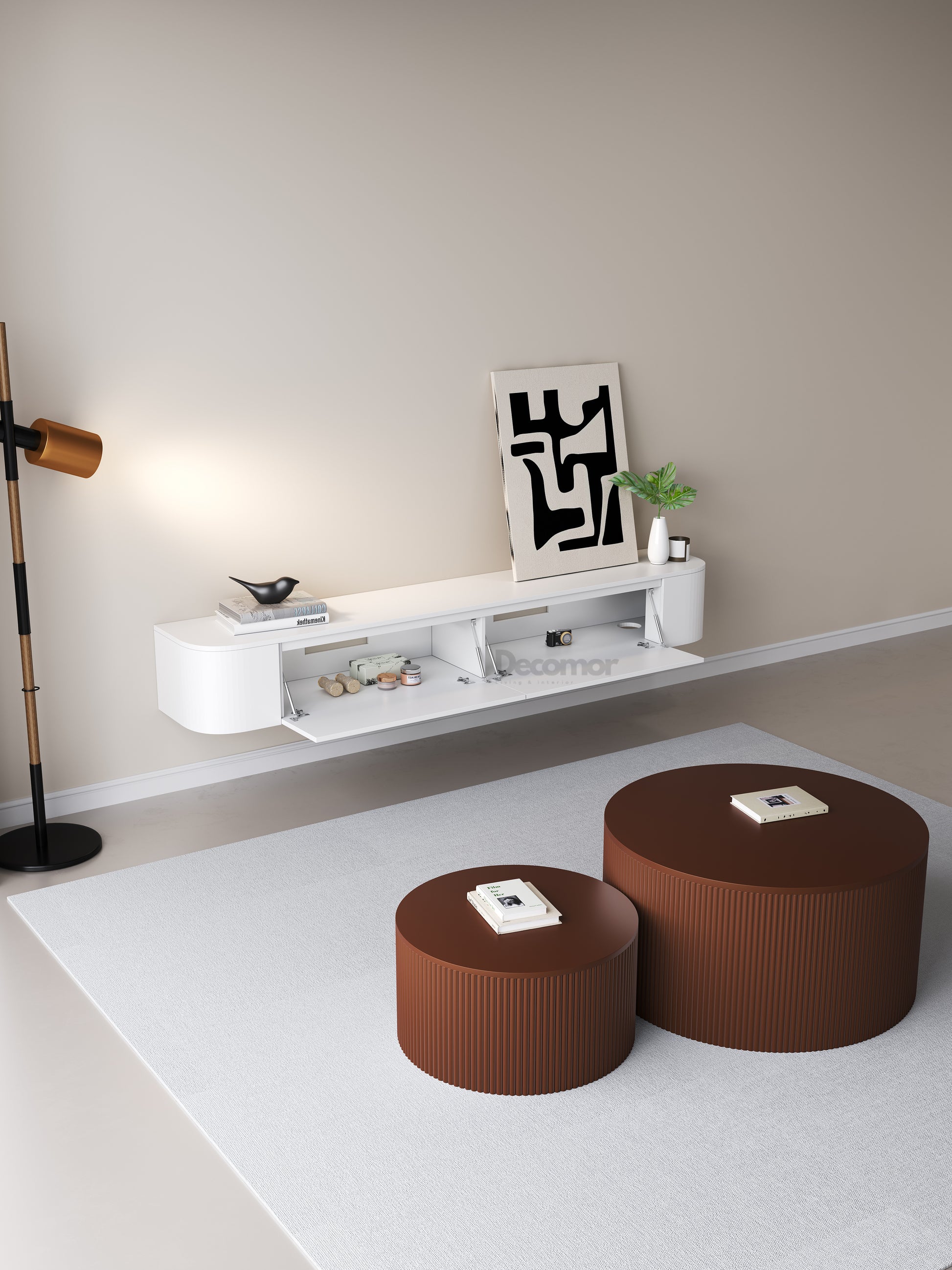 Chic Curve Ronde TV Meubel 180cm - Zwevend – Wit mat