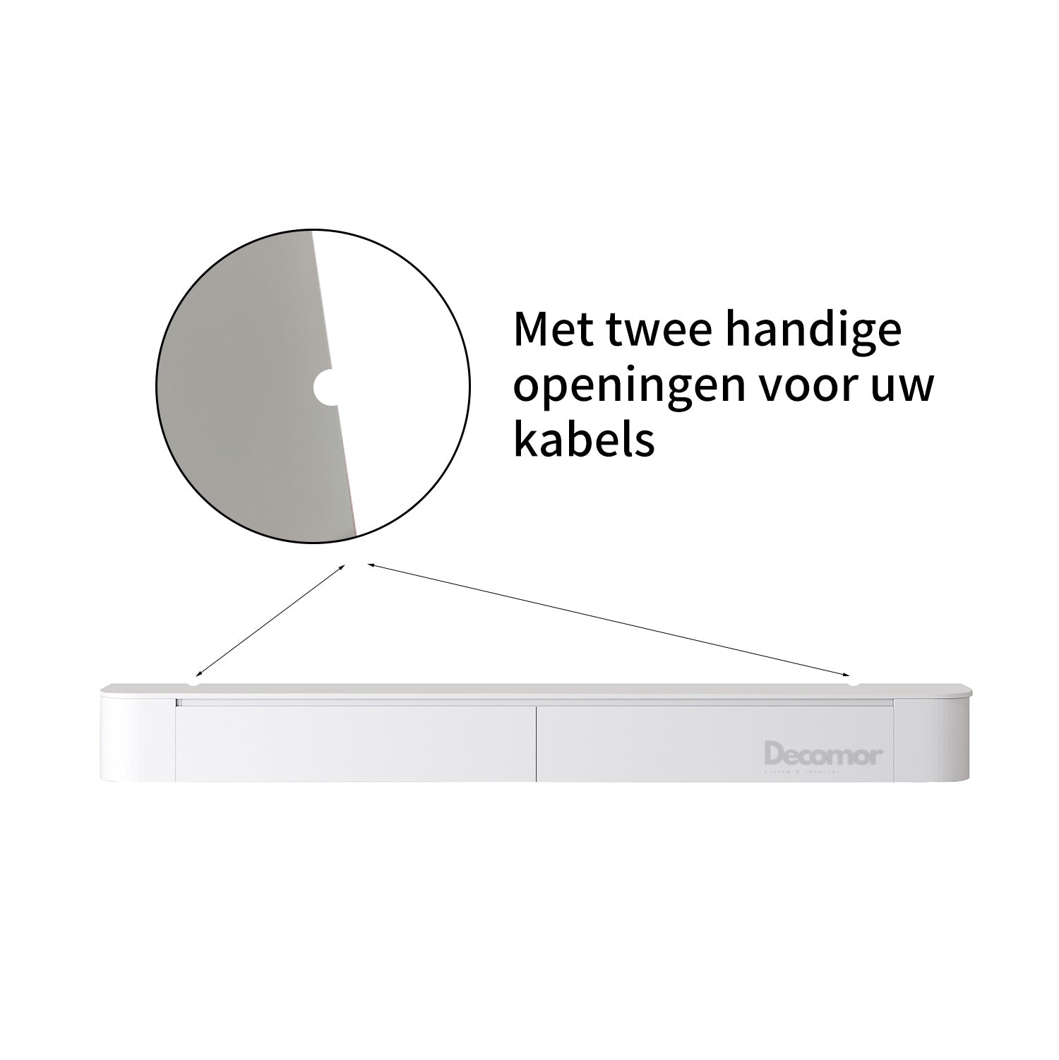 - Kabeluitsparingen: uitgerust met twee handige openingen voor kabels, zodat je snoeren netjes en uit het zicht blijven.