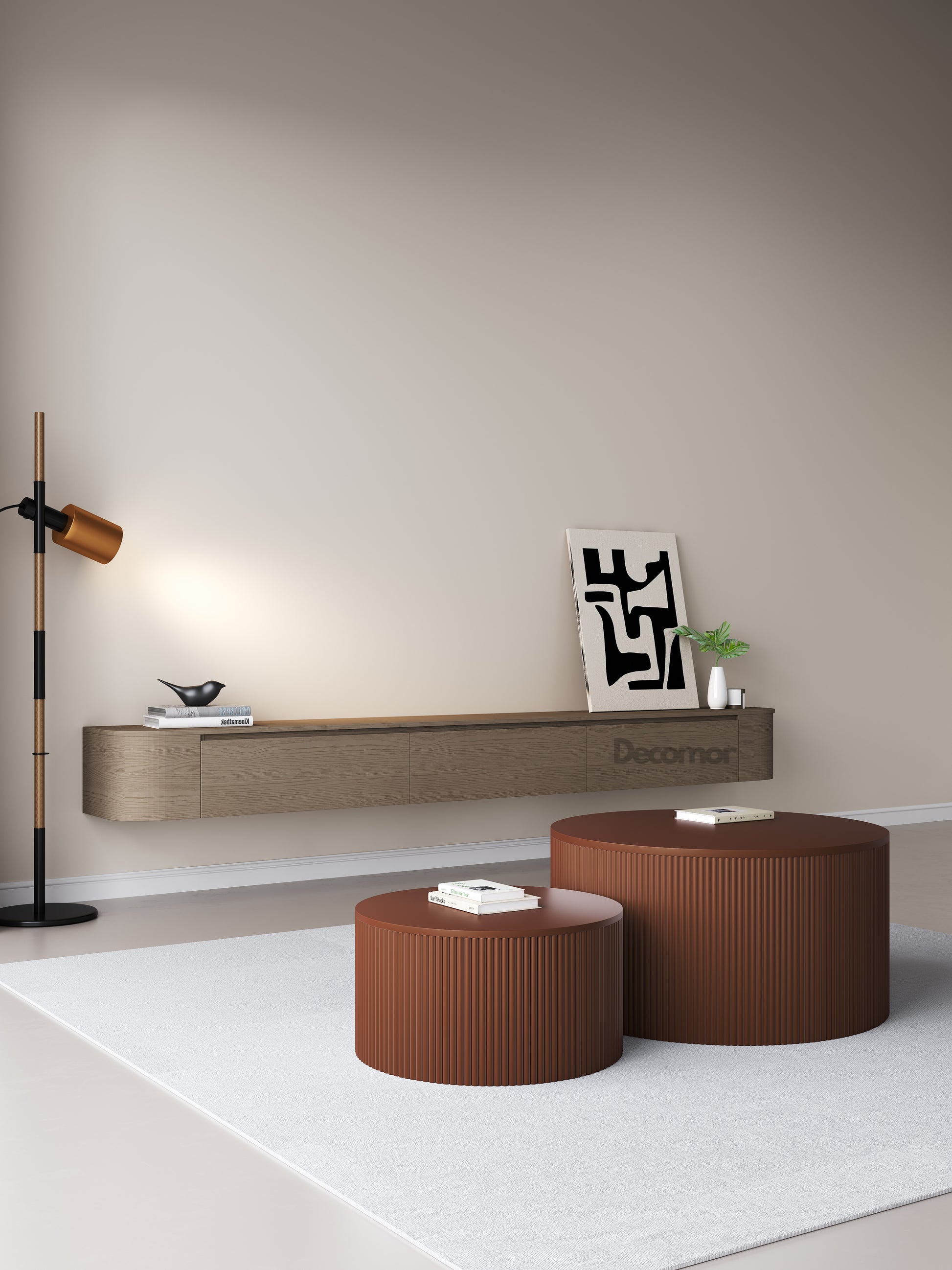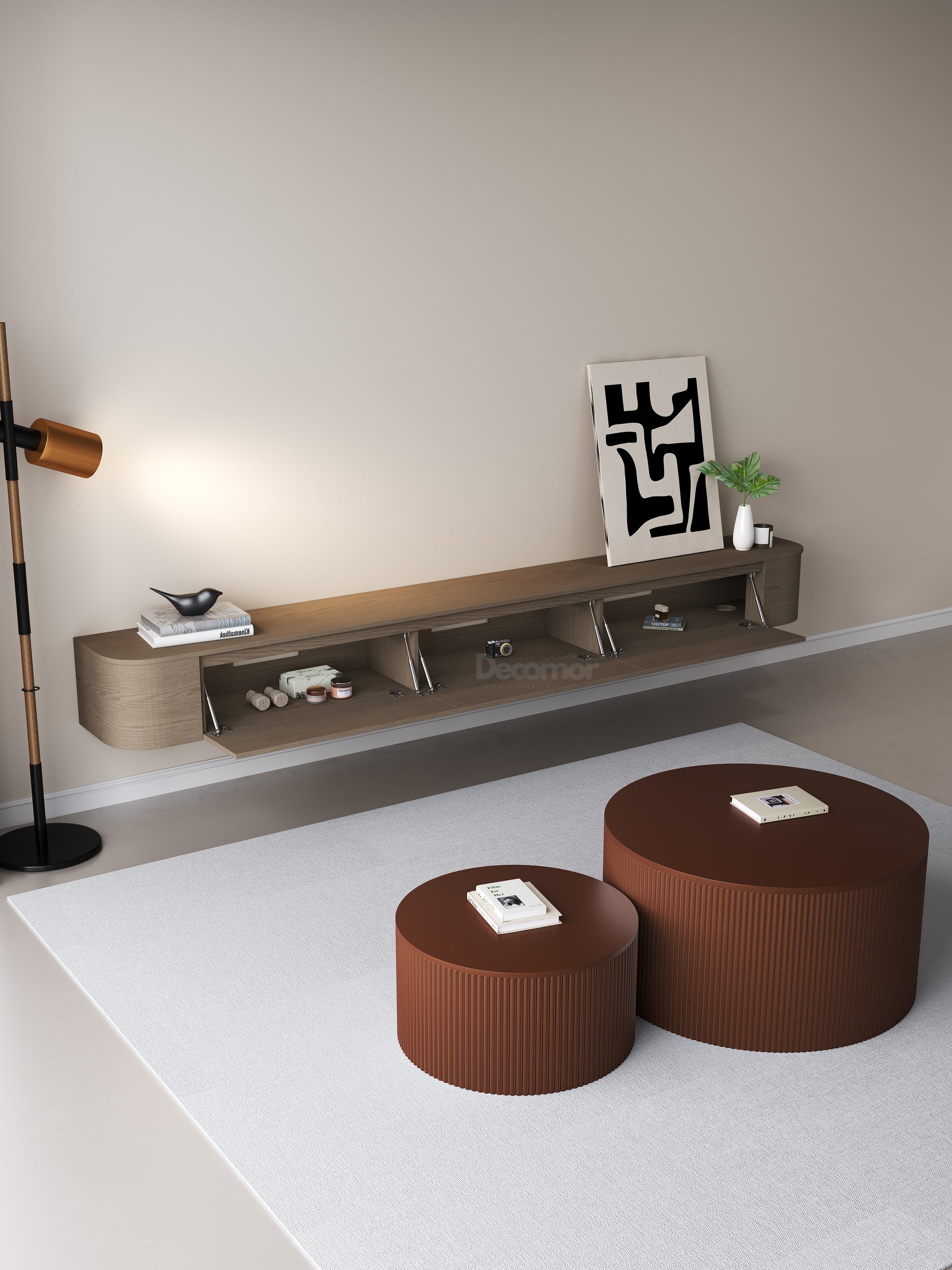 Chic Curve Ronde TV Meubel 240cm - Zwevend – Walnoot eiken